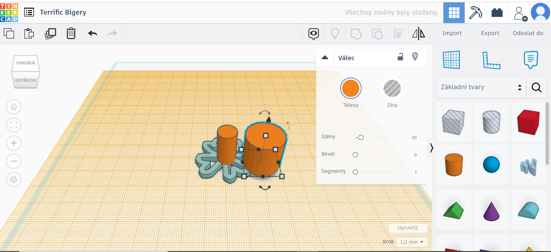 - Vytvoříme si nový válec, opět z nabídky bočního panelu a vložíme na pracovní plochu